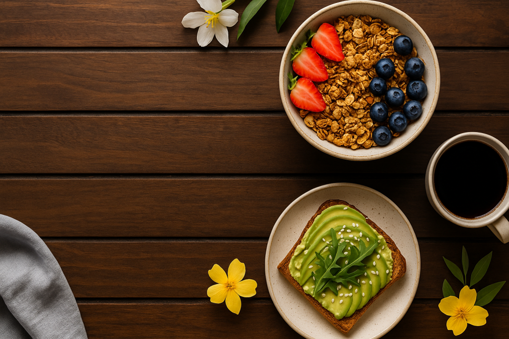 Cada plato que servimos es el resultado de decisiones conscientes: elegimos productos de proximidad, frutas y verduras de temporada, huevos camperos, pan artesano y bebidas naturales sin aditivos. Cocinamos sin prisas y sin trucos, como lo harías en casa, pero con un toque muy nuestro: flores, colores y mucho cariño.
